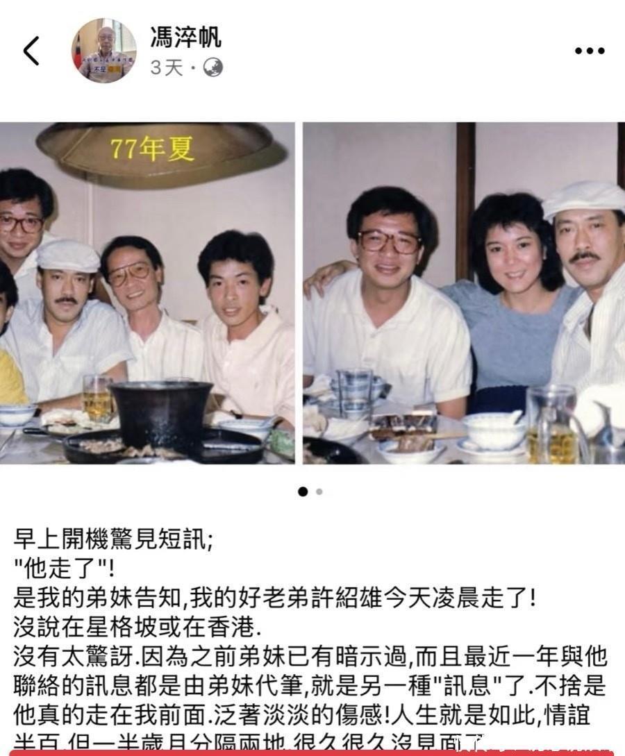 生命无常,岁月无情!天里,我们已经送走𱅀位艺人。10日的坣娜,10日的甄志强,10日的许绍雄,以及现在的冯淬帆。每一次告别,都像是从我们青春纪念册上,硬生生撕下一页。